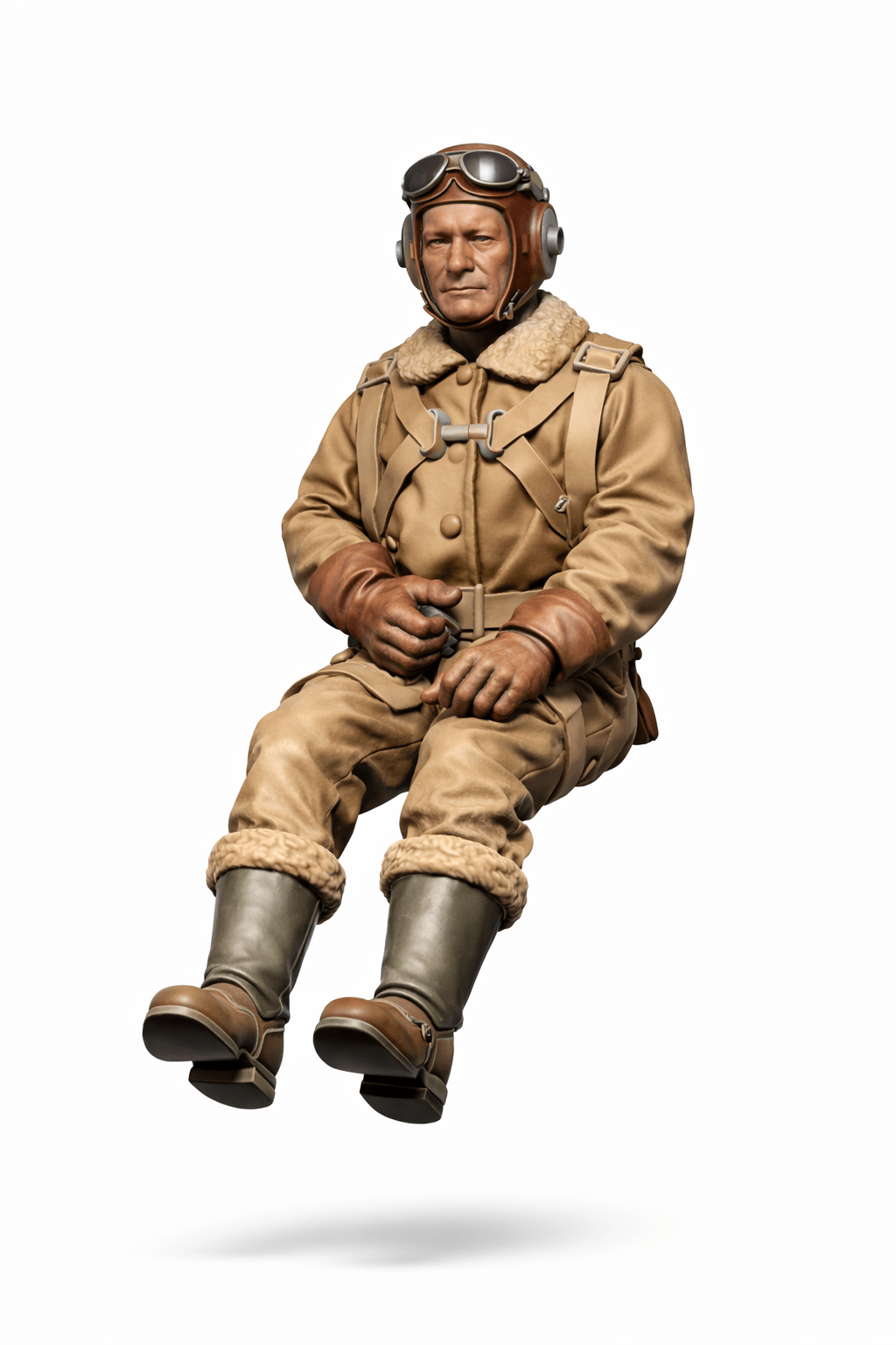 This product is a full-size ww1 model pilot sitting at the controls, made of resin by the brand 3dclever. It is designed for ages 17 years and up, and its origin is the United Kingdom. Perfect for aviation enthusiasts, collectors, or hobbyists interested in radio control and RC toys.